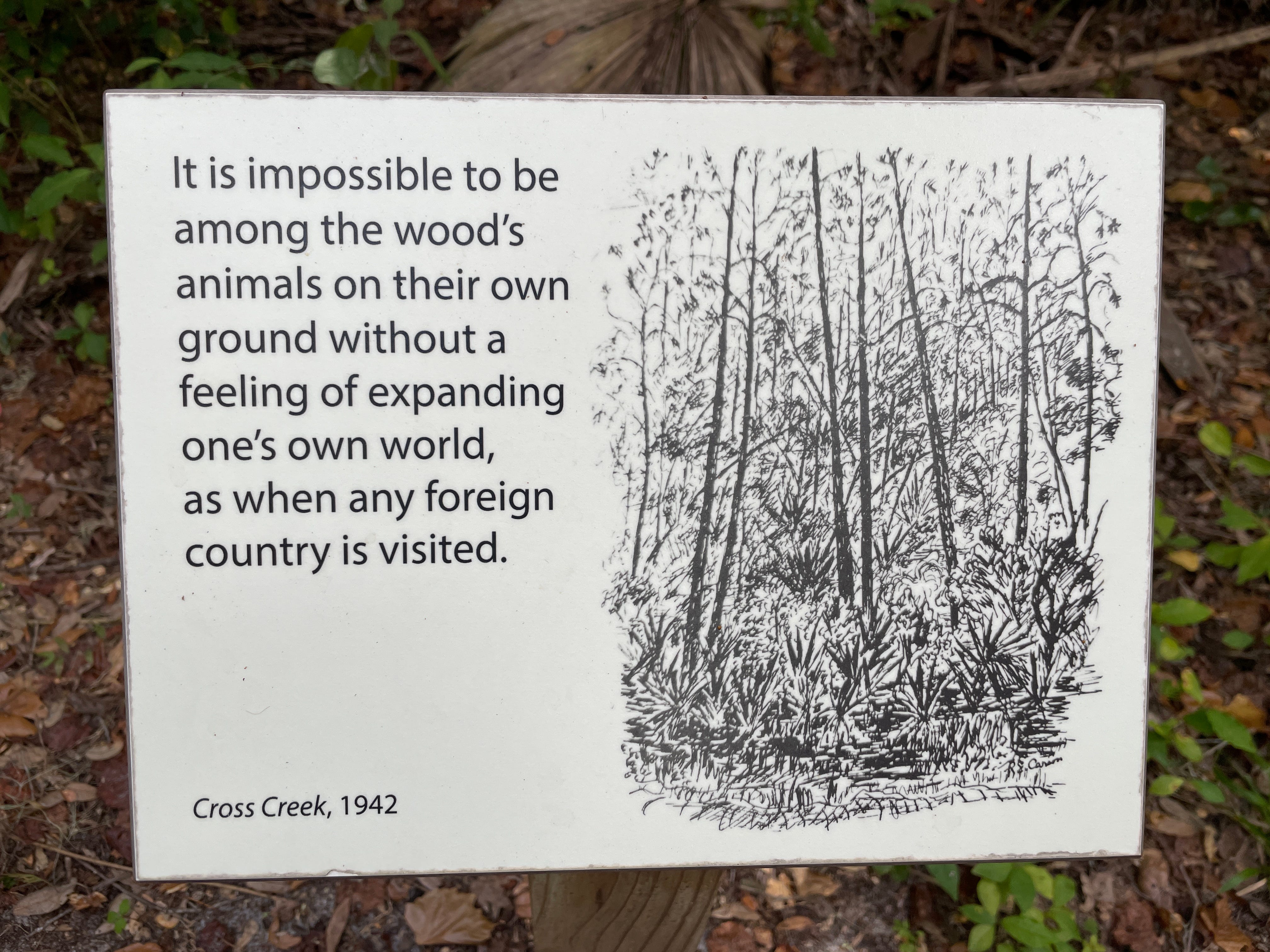Rawlings wrote in Cross Creek (1942), “I do not know how anyone can live without some small place of enchantment to turn to.” The Florida State Park Service has done a wonderful job preserving that enchantment. The park was quiet - except for the roosters! - and stepping back into what life was like in Florida 100 years ago brought me a sense of peace and calm.
